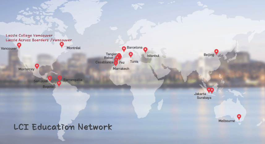 라셀 컬리지 밴쿠버(LCV)가 멤버인 LCI (Lasalle College International)는 다양한 학습 커뮤니티로서 5개 대륙에 23개의 캠퍼스를 보유한 12개의 엄선된 고등교육 기관이며, 매년 전 세계 2만 명 이상의 학생들을 교육시키는데 2000명의 교직원으로 구성되어 있습니다.
